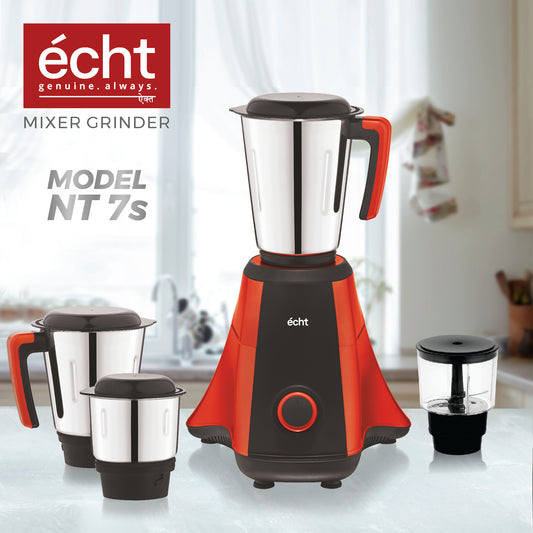 Echt NT 7s Mixer Grinder 750 Watt, 4 Stainless Steel Jars,Wet Jar (1500 ml), Multipurpose Jar (1000 ml), Chutney Jar (300ml) & Chopper Jar (500ml); with 3 Speed Control, with 2 years warranty,Rust