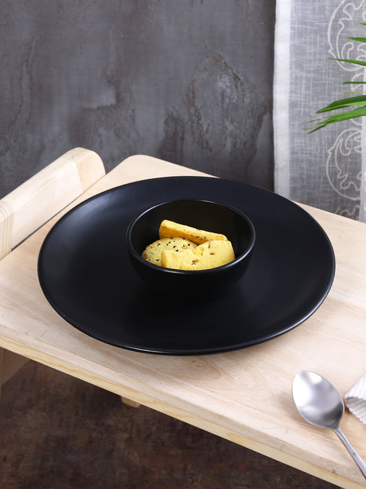 Narradora Sango Coupe Stoneware Dinner Set of 6 Pcs | 2 Pcs Dinner Plates, 2 Pcs Serving Bowls & 2 Pcs Veg Bowls | Premium Crockery Perfect for Gifting | Dinner Set | Matt Finish | Black