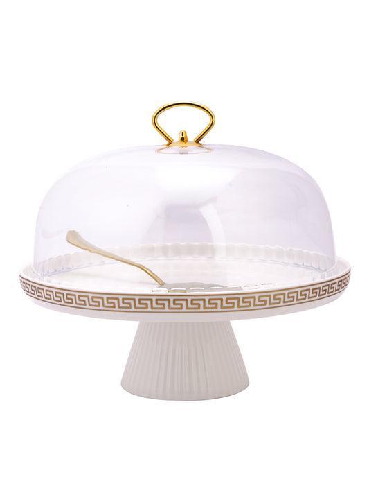 Narradora Cake Stand | 1 Layer with LID White Matt Gold Gift Box Easy to USE Perfect for Display Cake, Serving.