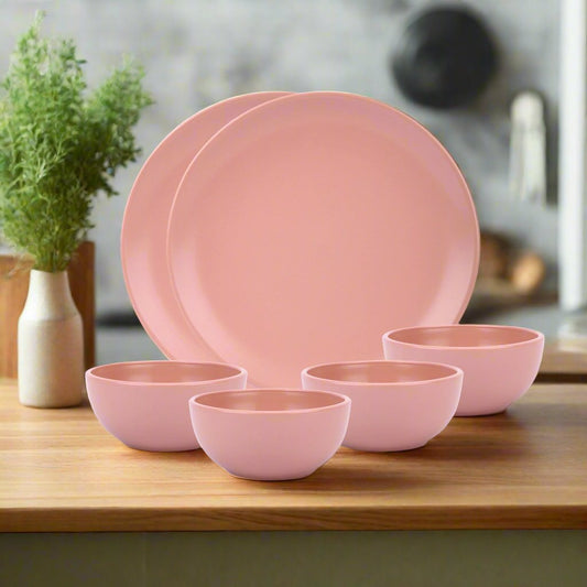 Narradora Sango Coupe Stoneware Dinner Set of 6 Pcs | 2 Pcs Dinner Plates, 2 Pcs Serving Bowls & 2 Pcs Veg Bowls | Premium Crockery Perfect for Gifiting | Dinner Set | Matt Finish | Pink