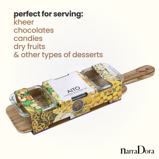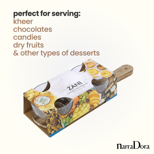 Narradora Slime Glass Bowl Snack Set 300ML Set of 2PCS with Wooden Tray | Perfect for Gifting