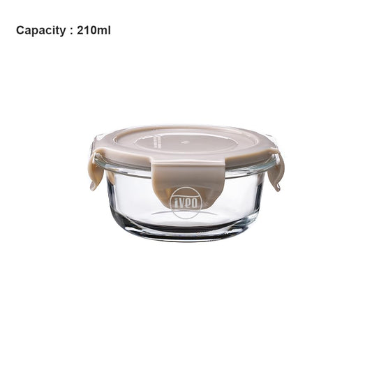 IVEO Borosilicate Glass Container, Fresh Nano | Microwave Safe Mini Food Container | Lunch Box | for Carrying and Storing Food | Air Tight | Leak Proof Food Storage | 210 ml, Round, 1 Pc, Beige