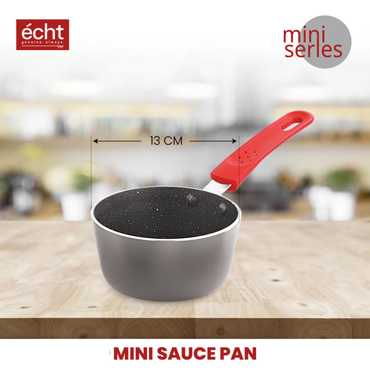 ECHT Granite Mini Series Non Stick Combo of 3 (15.5 cm Frying Pan,13cm Sauce pan and 13cm Grill pan, Idle for Single Serving and Quick Snacks. Saute,Frying and rotis vegies and Omelettes, Grey
