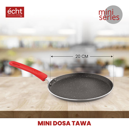 Echt Granite Mini Series Non Stick Combo of 3 (15.5cm Frying Pan,20cm Dosa Tawa and 16.5cm Kadai) Idle for Single Serving and Quick Snacks. Saute,Frying,dosa and rotis vegies and Omelettes,Grey