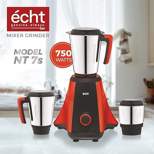 Echt NT 7s Mixer Grinder 750 Watt, 3 Stainless Steel Jars,Wet Jar (1500 ml), Multipurpose Jar (1000 ml), Chutney Jar (300ml); with 3 Speed Control, with 2 years warranty, Rust