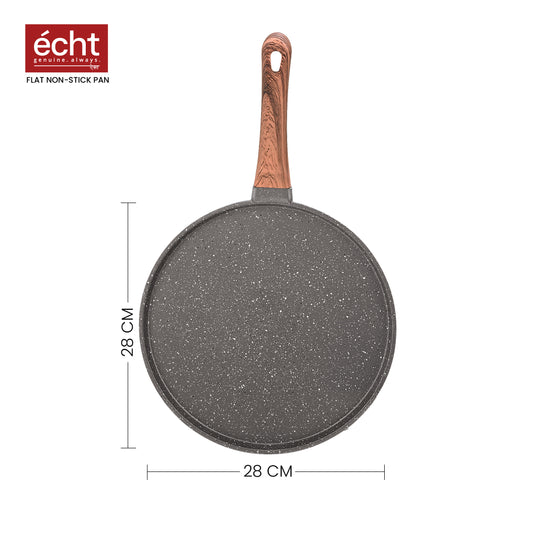 Echt Die Cast Aluminium Non Stick Dosa Tawa,Size 28 cm, Flat Roti and Chapati tawa, Granite Finish,Wooden Finish, Soft Touch Handle, PFOA Free, Idle for Indian Style Cooking,(Grey)
