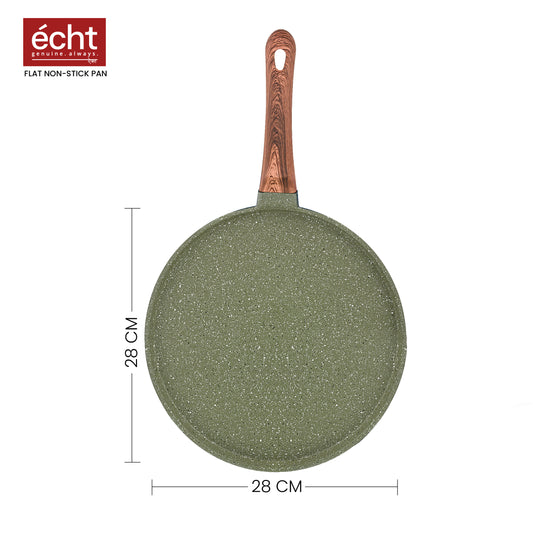 Echt Die Cast Aluminium Non Stick Dosa Tawa,Size 28 cm,Flat Roti and Chapati tawa, Granite Finish,Wooden Finish, Soft Touch Handle, PFOA Free, Idle for Indian Style Cooking,(Green)
