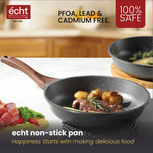 Echt Die Cast Aluminum Non Stick Frying Pan(24 cm), Granite Finish,Wooden Finish Soft Touch Handle, idle to sauté vegies and Fry Omelette, PFOA Free, Tapper Fry Pan with 1 Year Warranty(Grey)