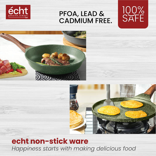 ECHT Die Cast Aluminium Non Stick Combo Set of 2 (20 cm Frying Pan and 28cm Dosa Tawa), Granite Finish, Soft Touch Handle, Idle for sauté,Frying,dosa and rotis vegies and Omelettes,Green