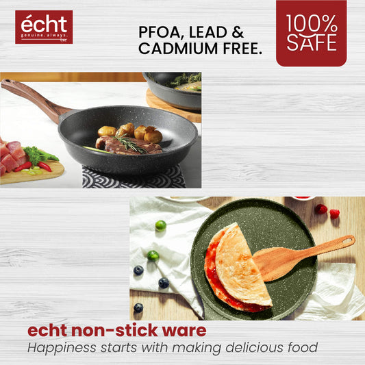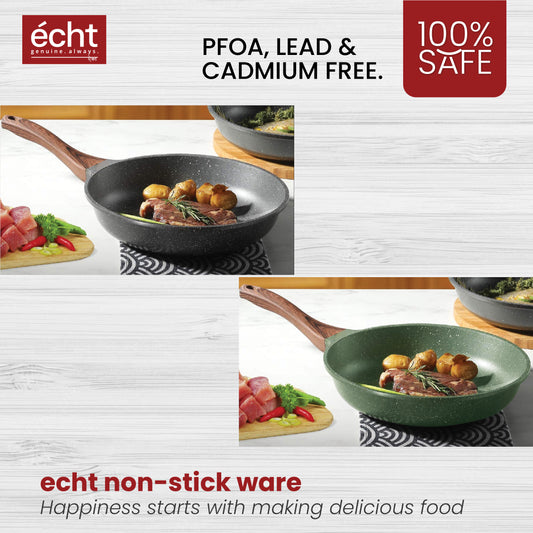 Echt Die Cast Aluminum Non Stick Frying Pan(24 cm), Granite Finish,Wooden Finish Soft Touch Handle, idle to sauté vegies and Fry Omelette, PFOA Free, Tapper Fry Pan with 1 Year Warranty(Green)