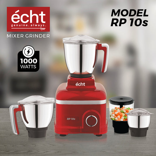 Echt RP 10s Mixer Grinder 1000 Watt,4 Stainless Steel Jars,Wet Jar (1500 ml), Multipurpose Jar (1000 ml), Chutney Jar (300 ml) and Chopper Jar (500ml);3 Speed Control, with 2 years warranty, Red