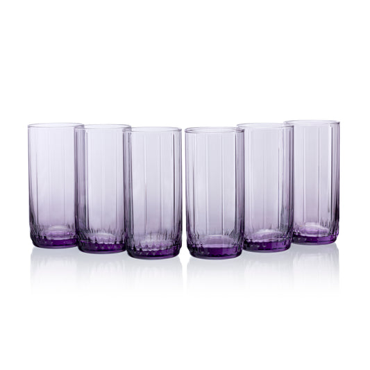 Pasabahce Allegra Purple Glass, Transparent 470 ml in Set of 6 Pcs, Perfect fit for Water/Juice.