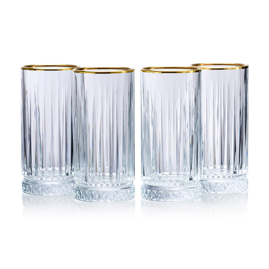 Pasabahce Elysia Glass Gold Rim Transparent Glasses, 280 ml in Set of 4 Pcs, Perfect fit for Water/Juice.