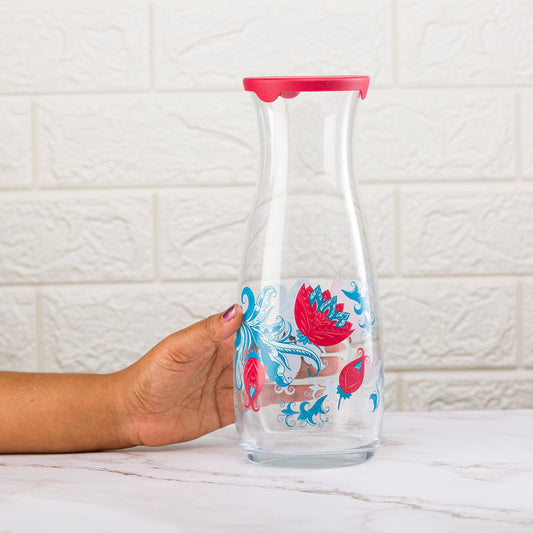 Pasabahce Floral Party Glass Caraffe Printed Transparent 1180 ml in Set of 1 Pcs, Perfect fit for Water/Juice.
