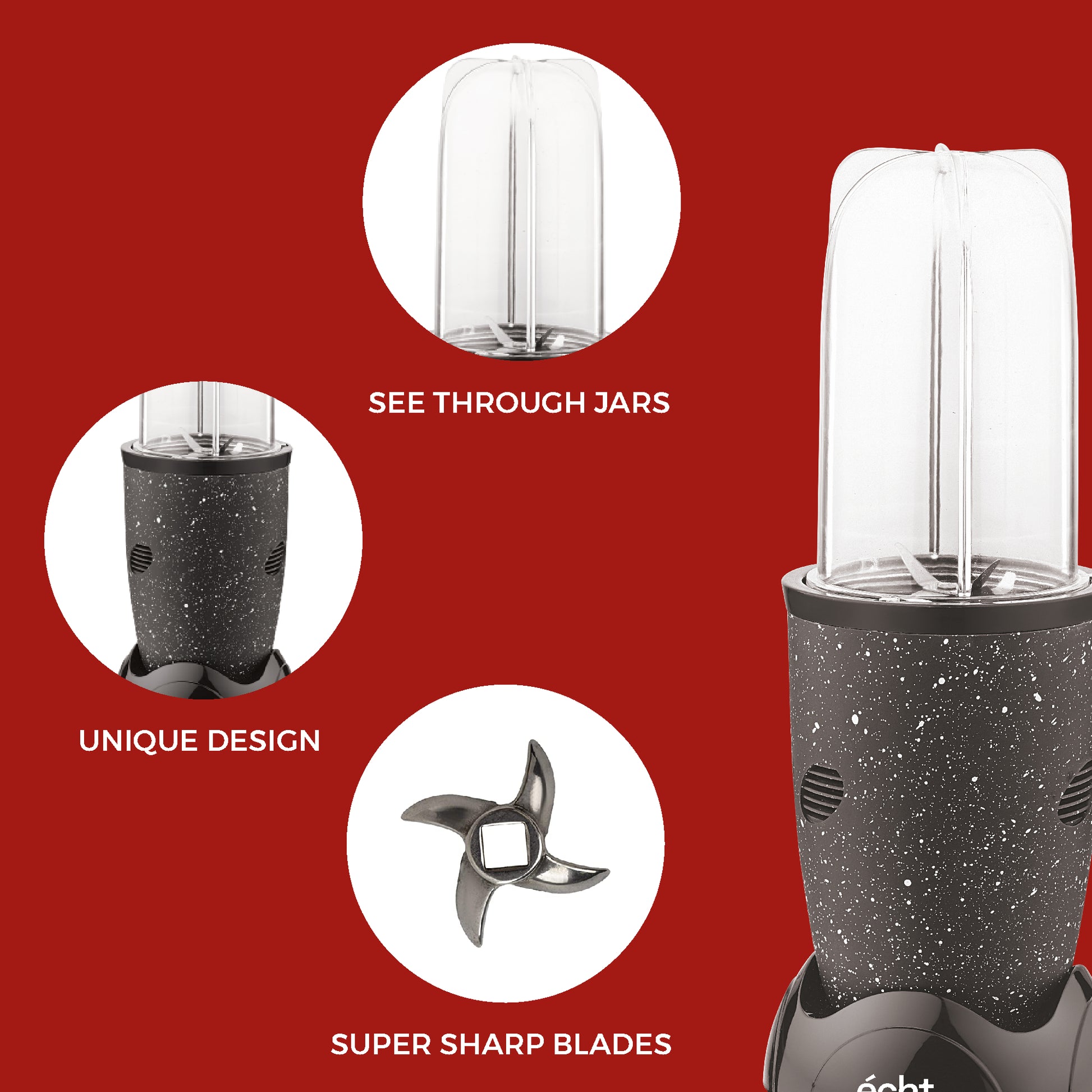 NUTRI BLENDER Grinder by Echt, NB4s 450 Watt,2 Multi purpose Jars for juices, smoothies, shakes, chutneys and dry masala; The Long Jar (500ml) & the Short Jar (300ml) 2 years warranty, Black Splatter